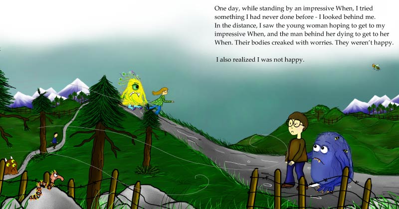 In our classic book, The Whens are monsters that come in all different colours and sizes, just like our "I'll be Happy Whens..." Except our book encourages you to be brave enough to step off their trail and search for what actually gives you a long lasting smile in life.