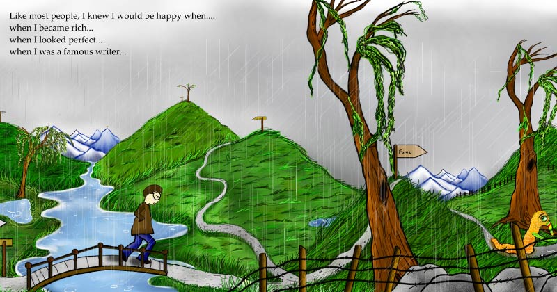 Chances are you have no trouble coming up with a whole page of answers. But every answer is the same: Happy when instead of happy now.